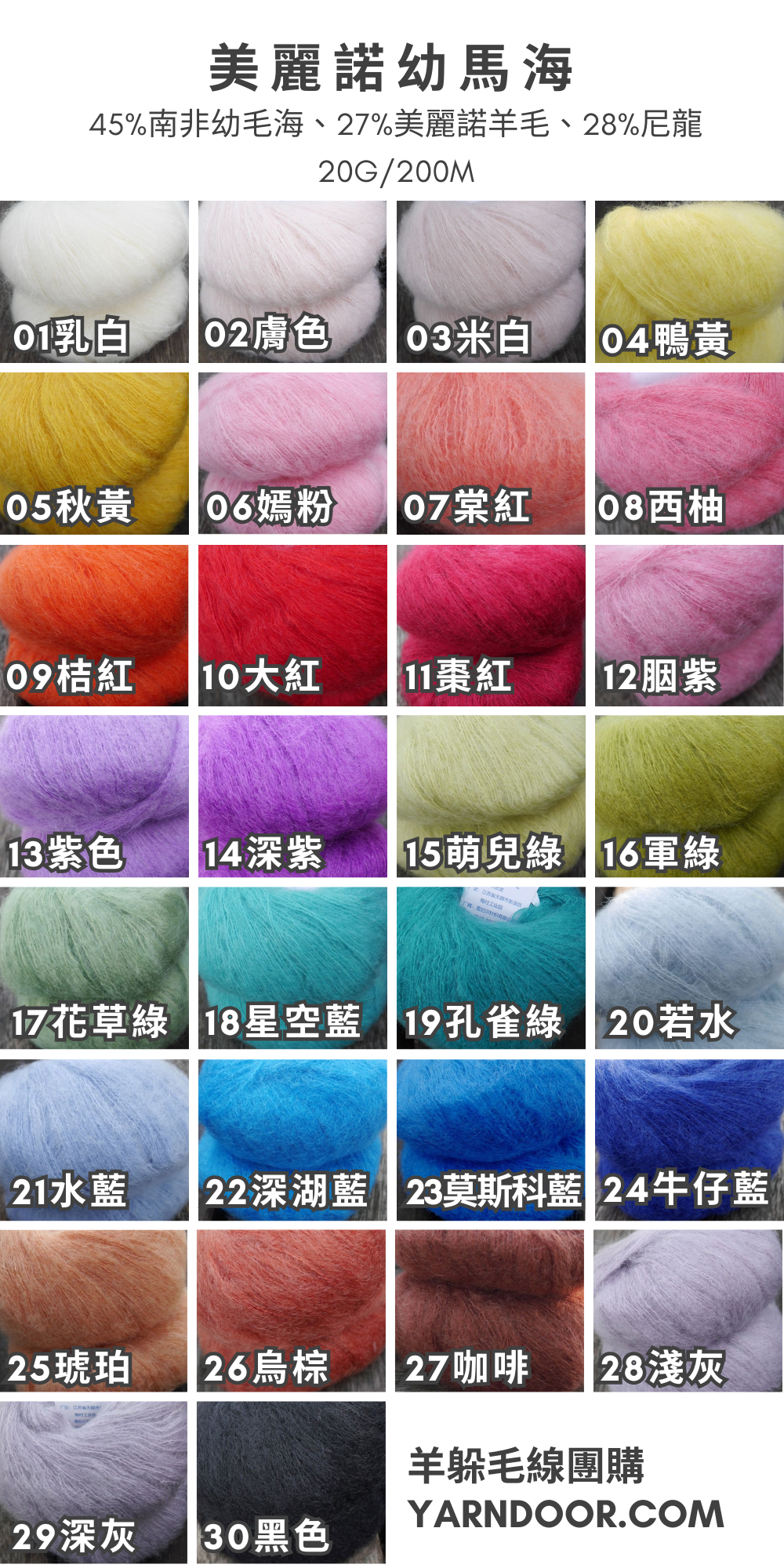 成 份|45%南非幼毛海、27%美麗諾羊毛、28%尼龍