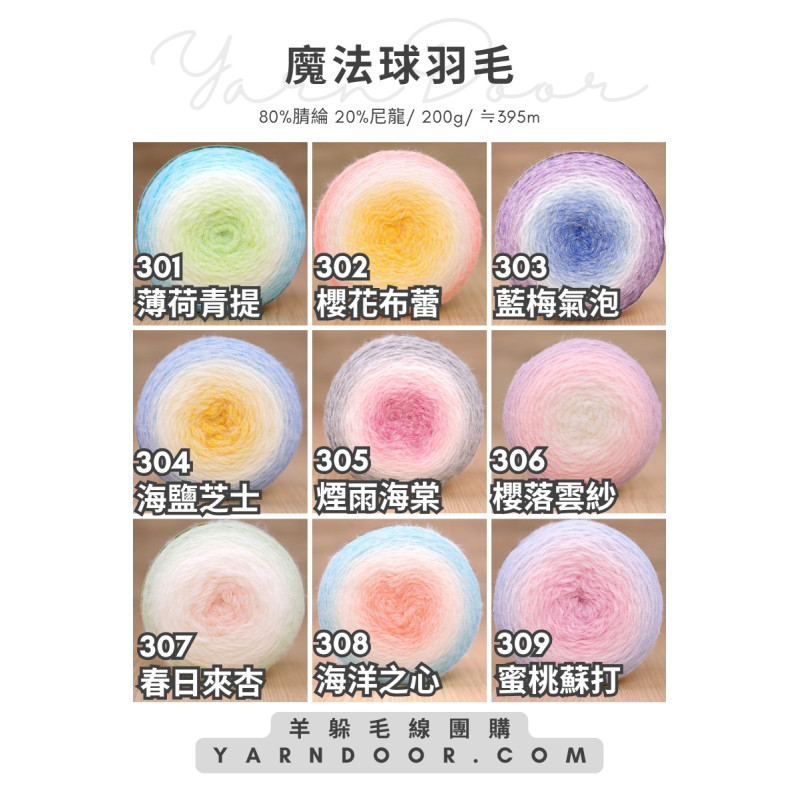 這款是淡淡長距離漸層的魔法球羽毛線,適合鉤織目前最熱門的花束毯、七星毯、祖母方格毯、各種披肩、、、等等等。