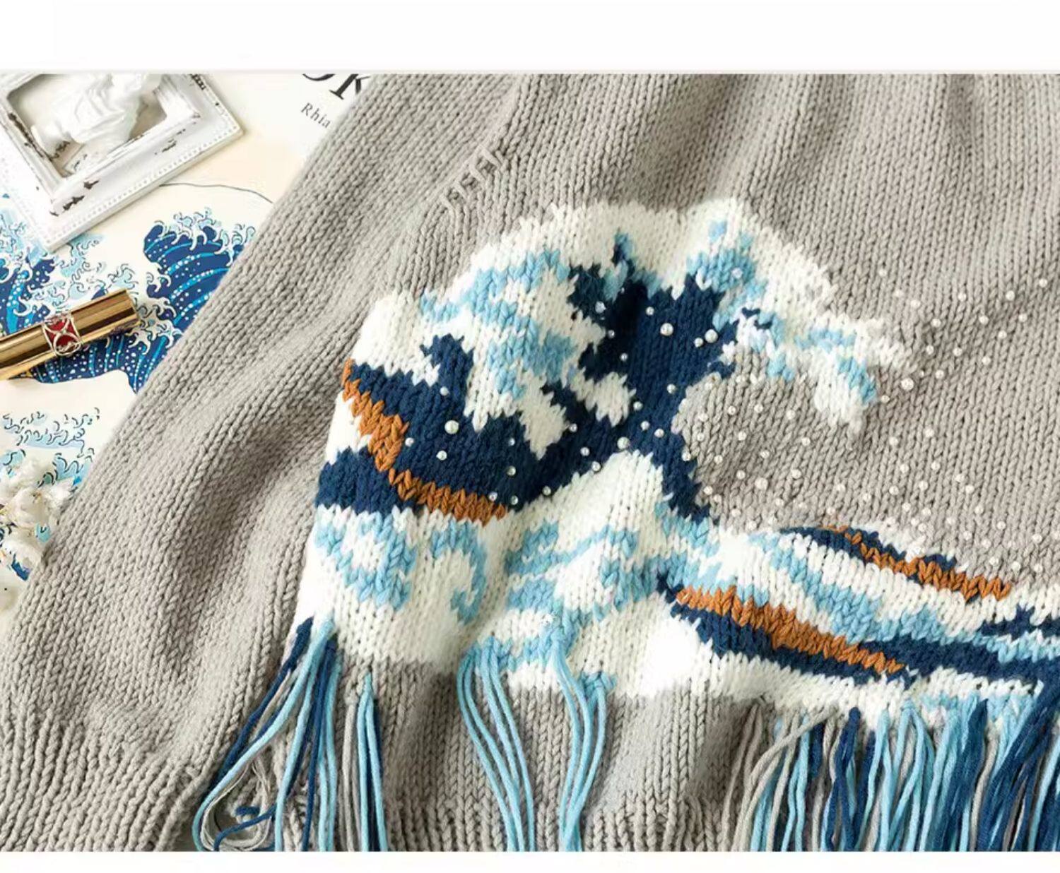 【SA1214_1】《致敬》系列-融化的名画毛衣_海浪款编织视频教程