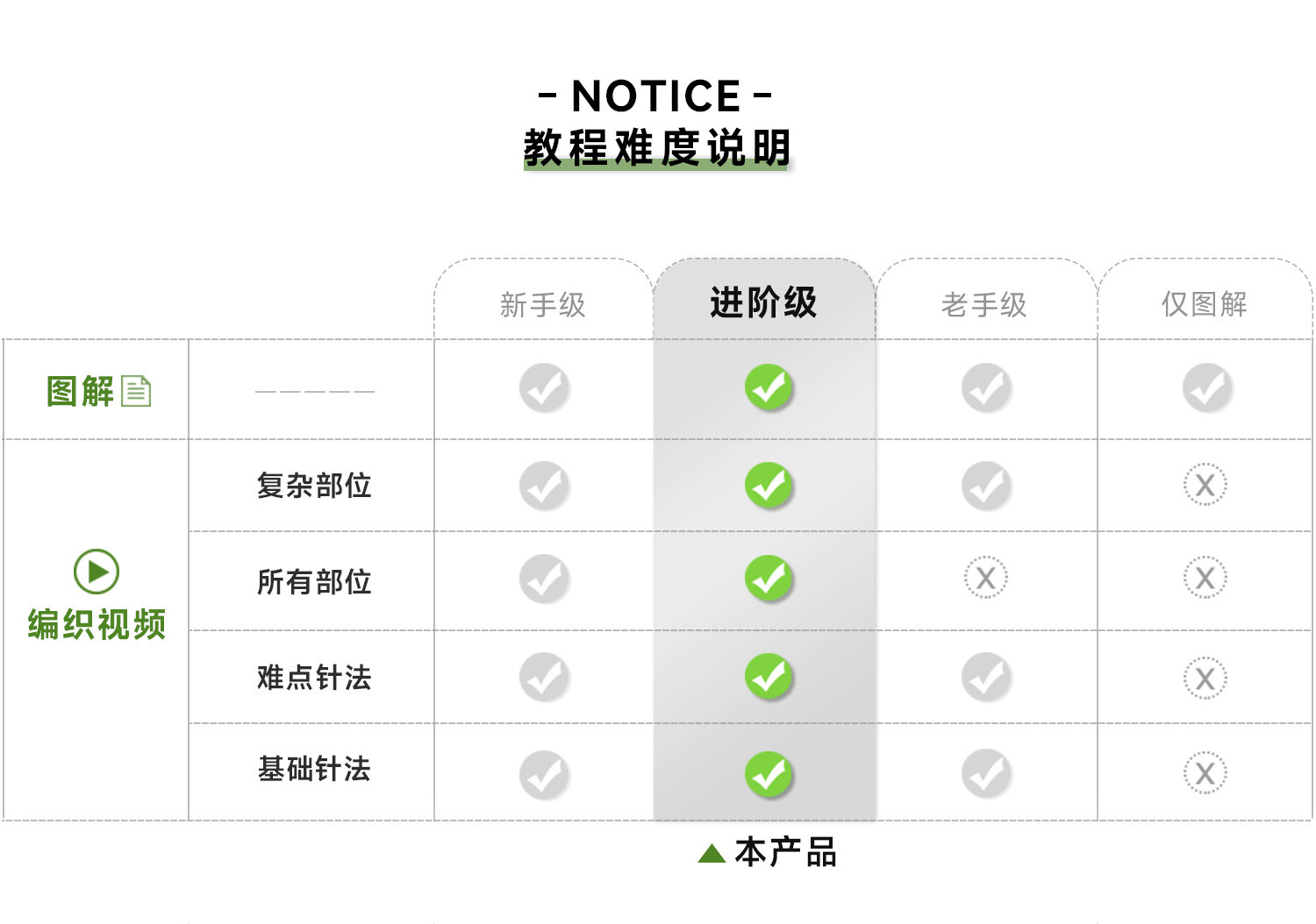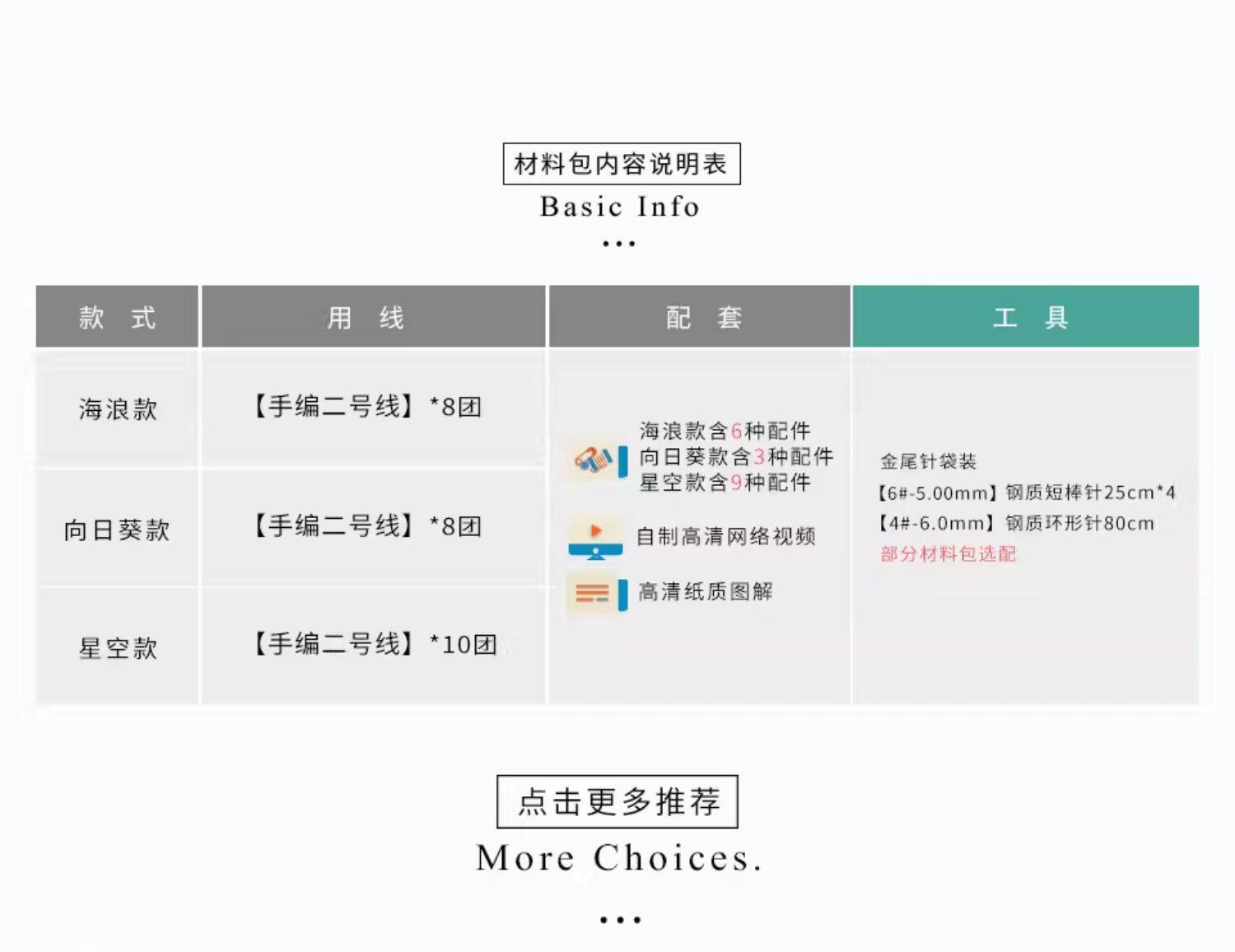 所有材料包均不含工具,織圖上標示的針號為中國制(例如9號=3.75mm)請確認是否有此針號,沒有可以加購工具,謝謝囉^^