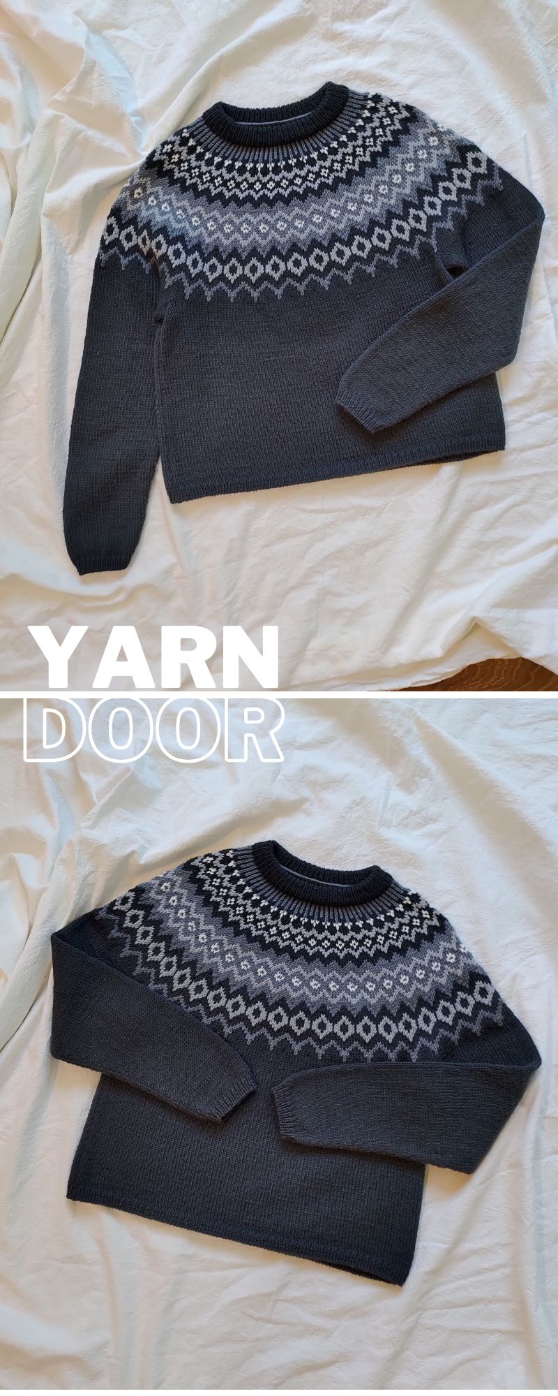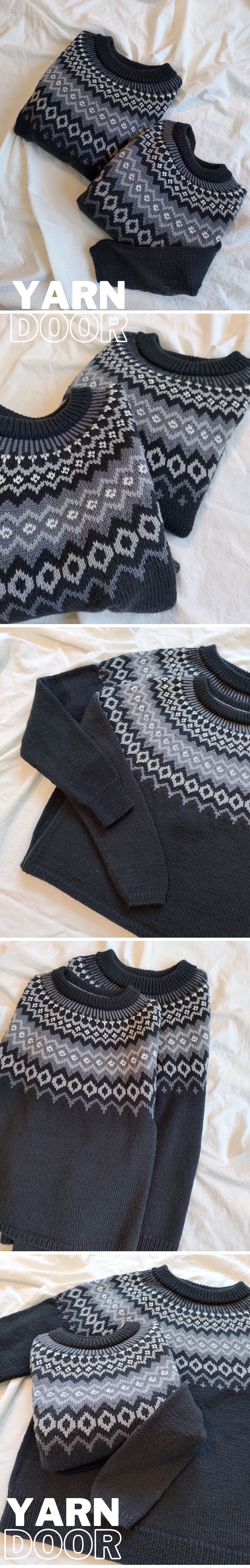 整件毛衣是下往上編織,分為前後片及袖片單獨片織,再串起來織提花育克的部份一路減針至領口,織圖為日式織圖,中文說明,適合有毛衣編織經驗的織友,款式不難織,也可自行改圖變成由上往下圈織的款式。