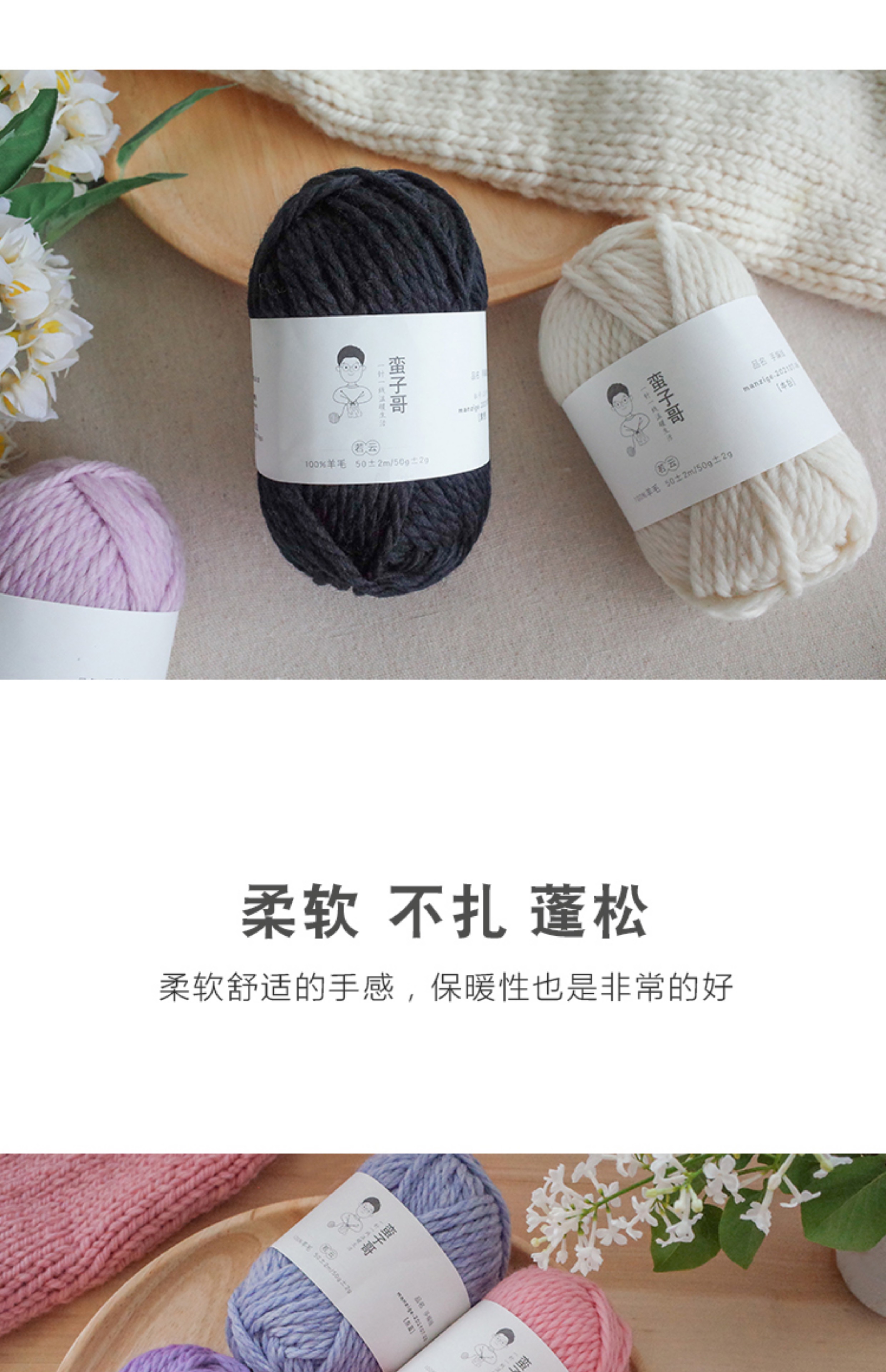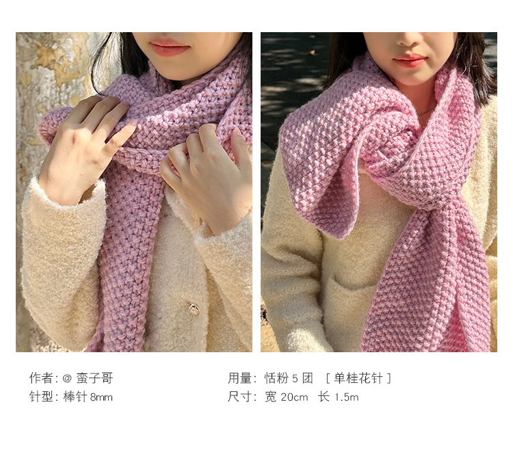 這款「若雲」相對同品牌的粗羊毛「暖初」來說線條較細,粗紡羊毛材質也較輕,更適合拿來粗織大件織品,像背心、外套或毛衣之類。若要貼身織圍巾我個人覺得「暖初」會更親膚一些,但要說「若雲」就不可貼身哪也不會,只是相對而言,畢竟蠻子哥他家還有不少圍巾材料包就是用「若雲」呢~除了肌膚特敏感的人,我覺得應該大多數人都還是滿ok的。