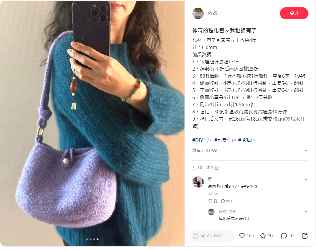再來,這款純純的羊毛線是不防縮的,請一定要用冷水手洗,不可以浸泡,不可以機洗,更不可烘乾,除非是要玩毛氈。其實羊毛線材並沒有哪麼尊貴難保養,最怕的就是縮水而已,做到以上這幾點基本上不會有縮水的問題。